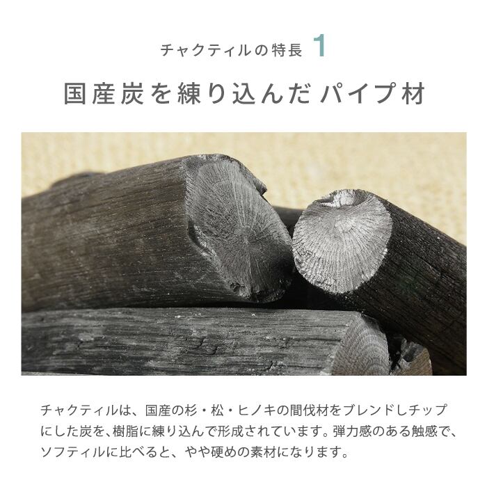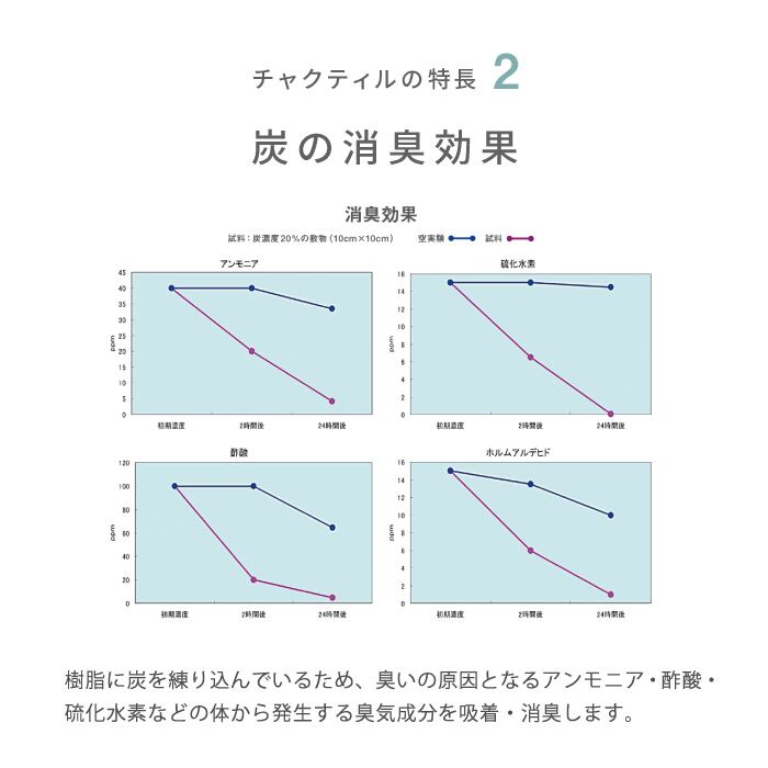 持つ優れた抗菌性・防虫性・調湿性・消臭性・芳香性とそこに炭が持つ消臭効果・弾力性・