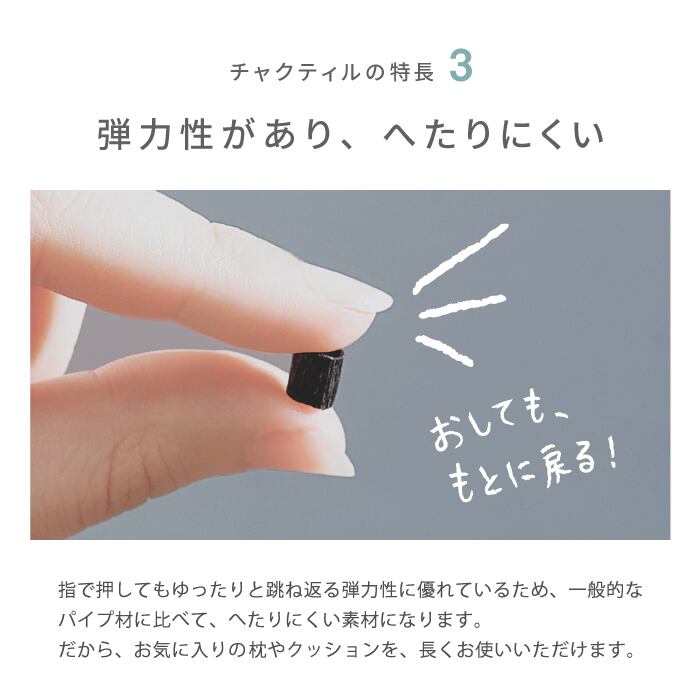 ●素材に約2㎜と言う小粒ひのきチップと炭パイプを使用している為、使用時の凹凸感が小さく、弾力性があり、肌当たりが優しく、それはまるで優しい柔肌の様な感触です。 ●椅子に置いてもちょっとした腰あて枕にもなり大変便利です。 ●普段使用している枕に重ねての使用しても良いでしょう。